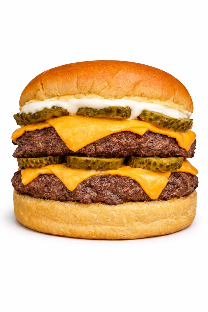 Pão PDB, maionese PDB, 2 suculentos burgers de 130g grelhados na churrasqueira, 2x mais cheddar e picles - acompanha molho